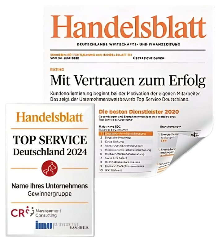 Gemeinsam mit unserem starken Medienpartner wie Handelsblatt zeichnen wir Unternehmen aus, die in Sachen Kundenorientierung neue Maßstäbe setzen.